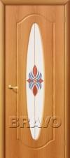 Дверь ПВХ Орбита в цвете П-11 (ИталОрех) остекленная